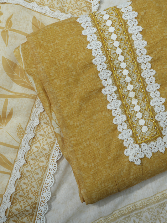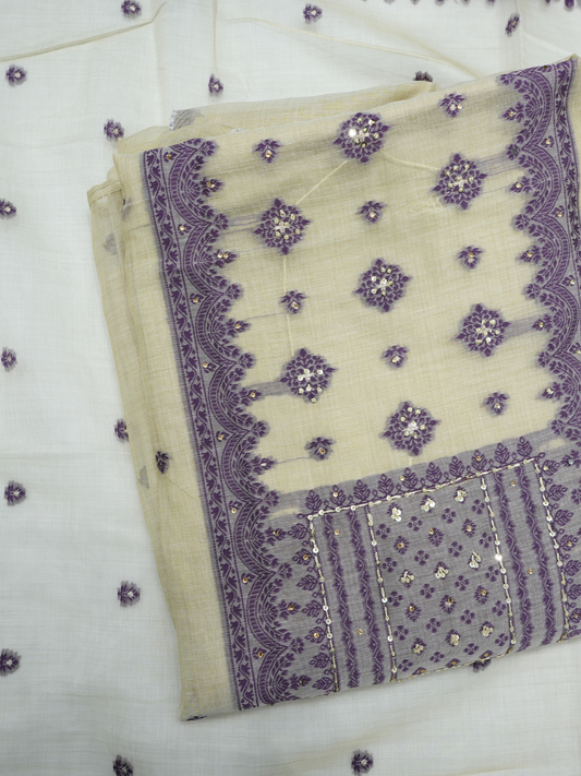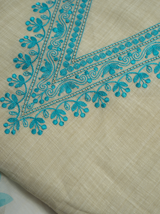 Chanderi Thread & Print Suit (Beige)