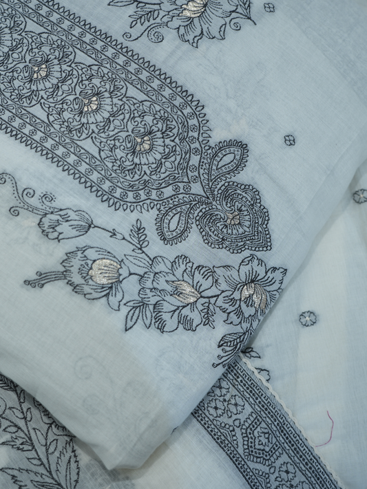Cotton White Thread Work Suit